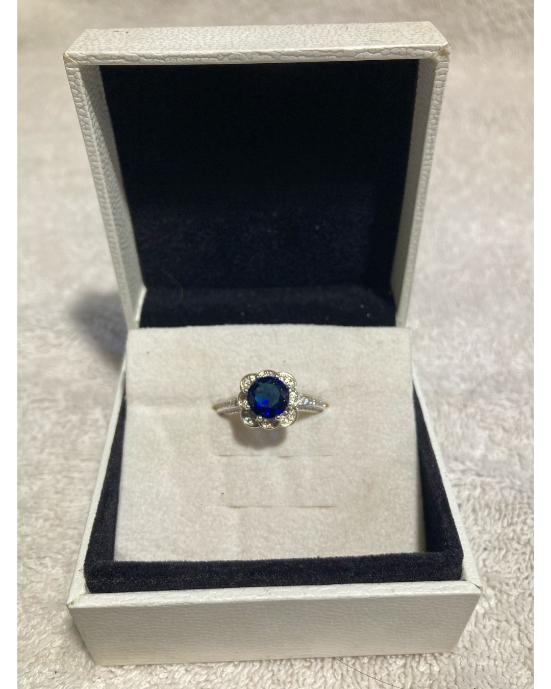 Anillo Flor Real en Plata 925 – Elegancia Clásica con Zirconia Azul y Brillantes
